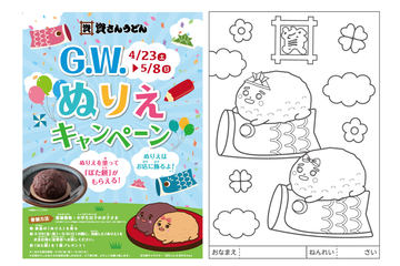 資さんうどん、「ぬりえ」持参でぼた餅がもらえる「G.W.ぬりえキャンペーン」