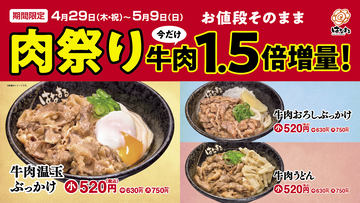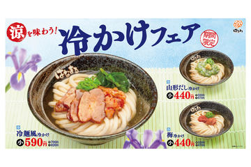 はなまるうどん「涼を味わう!冷やかけフェア」。冷麺風・山形だし・梅の3種類