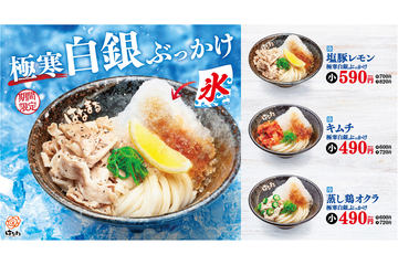 かき氷で冷やして食べる、はなまるうどん「極寒白銀ぶっかかけ」