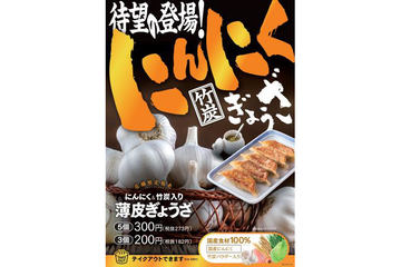 リンガーハット、「にんにく&竹炭入り薄皮ぎょうざ」関西・東海エリア限定