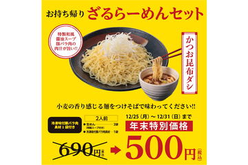 幸楽苑、懐かしい味わいの「ざるらーめん」発売。持ち帰り「ざるらーめん」も特別価格に