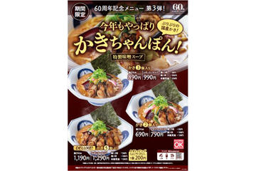 リンガーハット、グループ創業60周年記念メニュー第3弾「かきちゃんぽん」