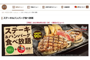 ステーキガスト、“肉(29)の日”限定「ステーキ&ハンバーグ食べ放題」