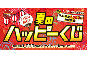 ガスト、はずれなしの「夏のハッピーくじ」。1000円お食事券やクーポンが当たる