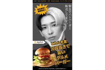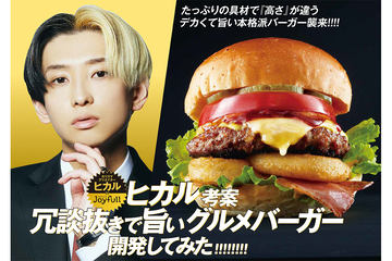 ジョイフル、コラボ第3弾「ヒカル考案 冗談抜きで旨いグルメバーガー」全国発売