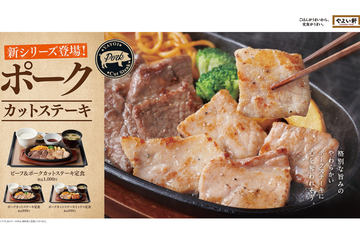 やよい軒、牛も豚も楽しめる「ビーフ&ポークカットステーキ定食」
