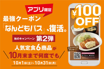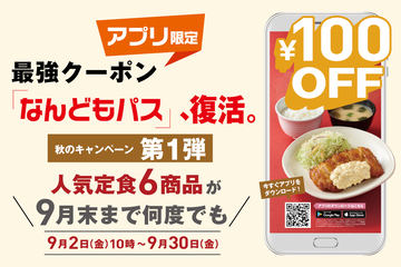 やよい軒、から揚げ定食など6品が100円引きの「なんどもパス」配信