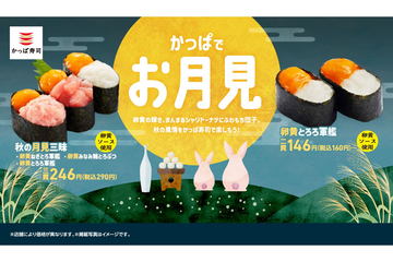 かっぱ寿司「かっぱでお月見」シリーズに「秋の月見三昧」が登場。シャリドーナツや団子なども提供