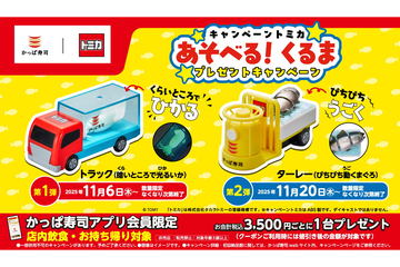 かっぱ寿司、トミカとコラボ決定! 寿司の裏側を支える「はたらくくるま」が登場予定