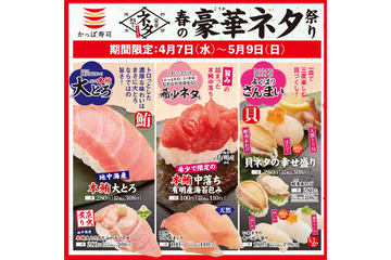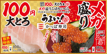 かっぱ寿司、4月2日~11日限定「メガ盛りこぼれいくら」「100円 大とろ」