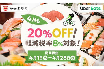 かっぱ寿司、Uber Eats20%オフキャンペーン。4月1日~28日実施