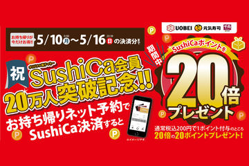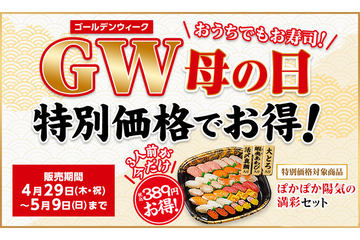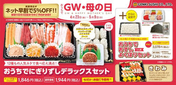 スシロー、テイクアウトの事前予約で400円引きになる「母の日」キャンペーン