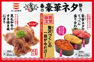 かっぱ寿司、GW限定の「豪華ネタのてっぺん盛り合わせ」「黒毛和牛のすき焼き風にぎり」