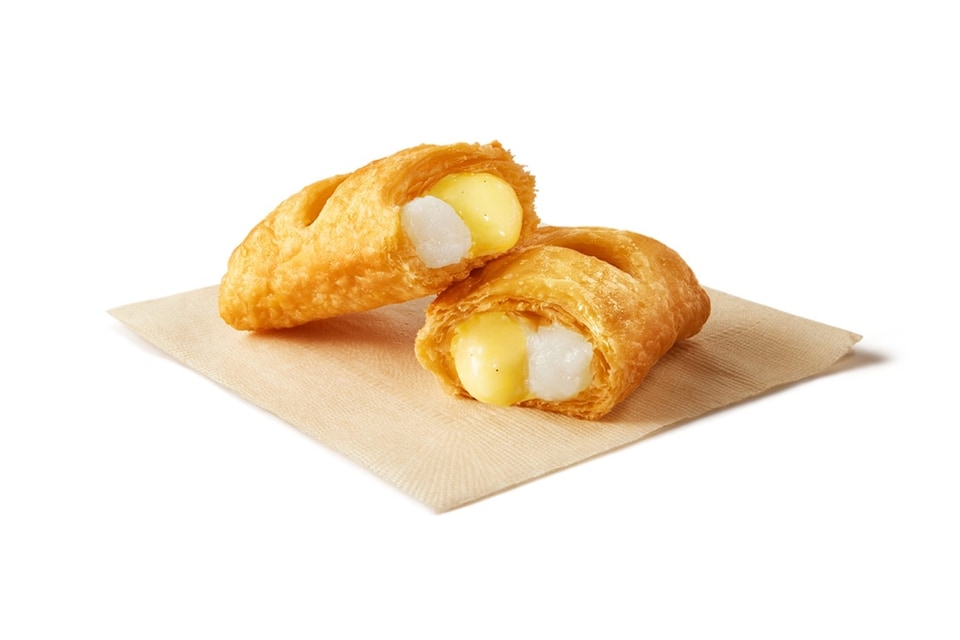 もちもち食感のおもちフィリングと“とろ~り”と濃厚なカスタードクリームをサクサクのパイ生地で包んだ、まさに月見の季節にぴったりの一品。濃厚だけどくどすぎない、カスタードクリームの絶妙な甘みが口いっぱいに広がる、至福のひとときをお楽しみいただけます。