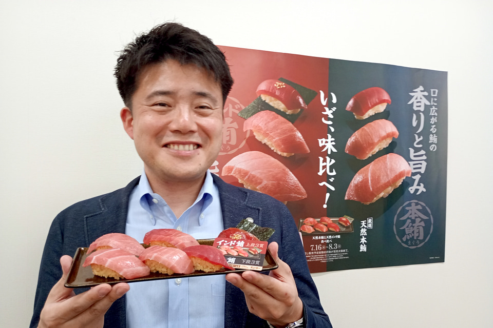 スシロー(FOOD & LIFE COMPANIES)は、7月16日~8月3日にかけて期間限定で「年に一度の別格まぐろ祭」を開催している。今回は商品部 仕入課の山上雅則氏がイチオシという「天然本鮪と天然インド鮪食べ比べ」について伺った。