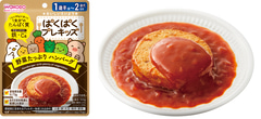 ハンバーグは見た目で野菜が入っているとわからないよう工夫しています。5種類の野菜を細かく刻んで練り込み、さらにソース中にも野菜のペーストを溶け込ませています。緑や赤の野菜を見ただけで食べたがらないお子さまが多いことがわかったので、食べてもらう工夫と、ママ・パパの「野菜を食べてほしい」という思いに応えました。