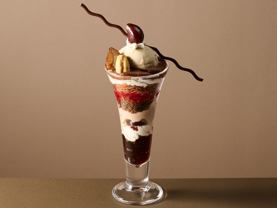 今村氏:イチオシ商品は「マロンとショコラのパフェ」です。イタリア栗と砂糖だけを使用したマロンペーストや、上品な甘さの渋皮栗アイスや栗の渋皮煮など、上品な甘さのマロンを存分にご堪能いただけます。また、濃厚なチョコクリームや、ピーカンナッツ、塩キャラメル&ナッツアイスのナッツのカリッとした食感、紅茶ゼリーの華やかな風味などがマロンの上品な甘さにマッチし、複雑で奥深い味わいをお楽しみいただけます。