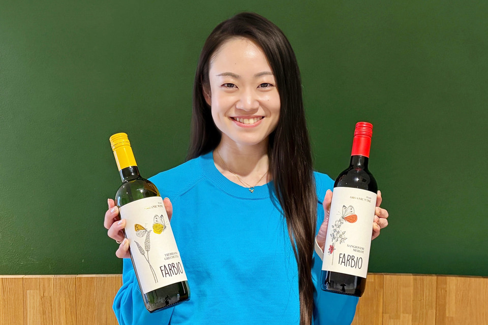 大藪氏:ファルビオは、有機JAS認証を取得したオーガニックワインです。「Far(する・創り出す)」「Bio(有機)」 と名付けられたワインには、人間と自然とのつながりやサステナビリティを体現しながら、イタリアの風土をそのまま伝えたいという想いが込められています。ラベルに描かれた美しい蝶は、有機栽培のブドウが洗練されたワインへと変化する様子、優雅で美しいワインの味わいを表現しています。