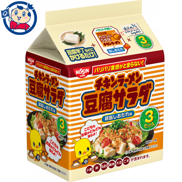 日清食品は、サラダに混ぜて食べることを想定した「チキンラーメン 豆腐サラダ 鶏旨しおだれ味 3セット入」を発売した。