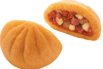 「かつカレーパン」は、まい泉のヒレかつを木村屋オリジナルのカレーソース入りの生地でスパイシーなコクのあるカレーと一緒に包み、まい泉の生パン粉をまとわせて揚げた格別な仕立てとなる。価格は381円。