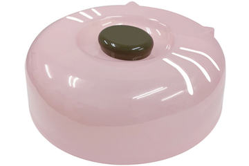 同商品は、魚肉ソーセージを立てて保管するためのスタンド型の容器。四角い形状の内側が円筒形に凹んでおり、そこに魚肉ソーセージを立てて保管できる。大きさは98×98×85mmで、価格は209円。