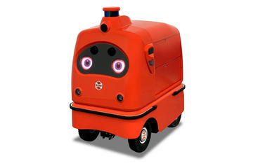 デリバリーロボットの大きさは71×46×60cmで、27L、20kgまでの荷物を積載できる。小さな段差は難なく乗り越えられる6つのタイヤを装備しており、カメラや各種センサーを駆使し、最大5.4km/hで歩道を走行して注文品を届ける。