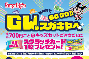オープンを記念して、3月28日から「スガキヤ」で注文した先着500名にスーちゃんスマホリング、「スガキヤ」「たこ寿」のどちらかで注文した先着3000名に次回以降使える100円引き券クーポン(5枚綴り500円分)をプレゼントするほか、キャラクター「スーちゃん」のグリーティングも実施する(3月28日10時~/15時~)。