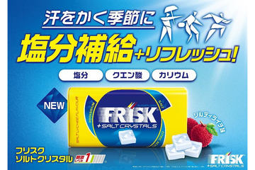 世界的な清涼タブレット菓子である「FRISK」のライセンス商品で、外側21℃/内側28℃の融点が異なる2層構造を採用。リング外側が解けてもより融点の高い内側が時間差で溶けていくため冷却効果が長持ちするという。