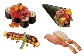 うなぎをさまざまな味わいで楽しめるよう、うなぎと玉子を歯切れのよい海苔で包んで食べる「店内蒸しうな玉手巻」や、「店内蒸しうなぎアボカドロール」などの寿司も赤シャリで用意。