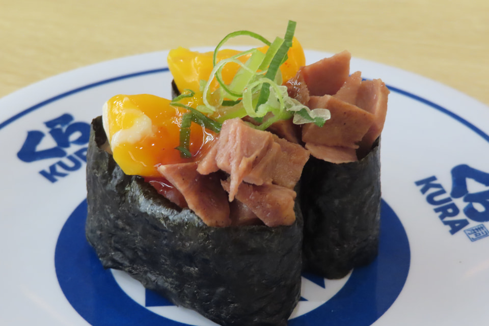 ちなみに、同店では店内で出た端材を活用したお得な軍艦を裏メニュー的に販売することがあるが、今回のフェア期間中は「うな玉」のうなぎの部分が牛タンになった「牛タンユッケ軍艦」(165円~)が提供される。端材は仕込み終わりのタイミングで出てくるため、開店直後や夕方前の時間帯が狙い目になりそうだ。