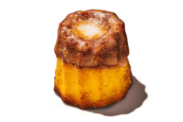 見た目と形状はカヌレのよう。頭から食べると、シャリっとした食感のシュガーグレースとほんのりビターなカラメルソースの絶妙な味わいが広がります。生地はカスタードプリンのようなやさしい甘みで、ふわっとしっとりしています。