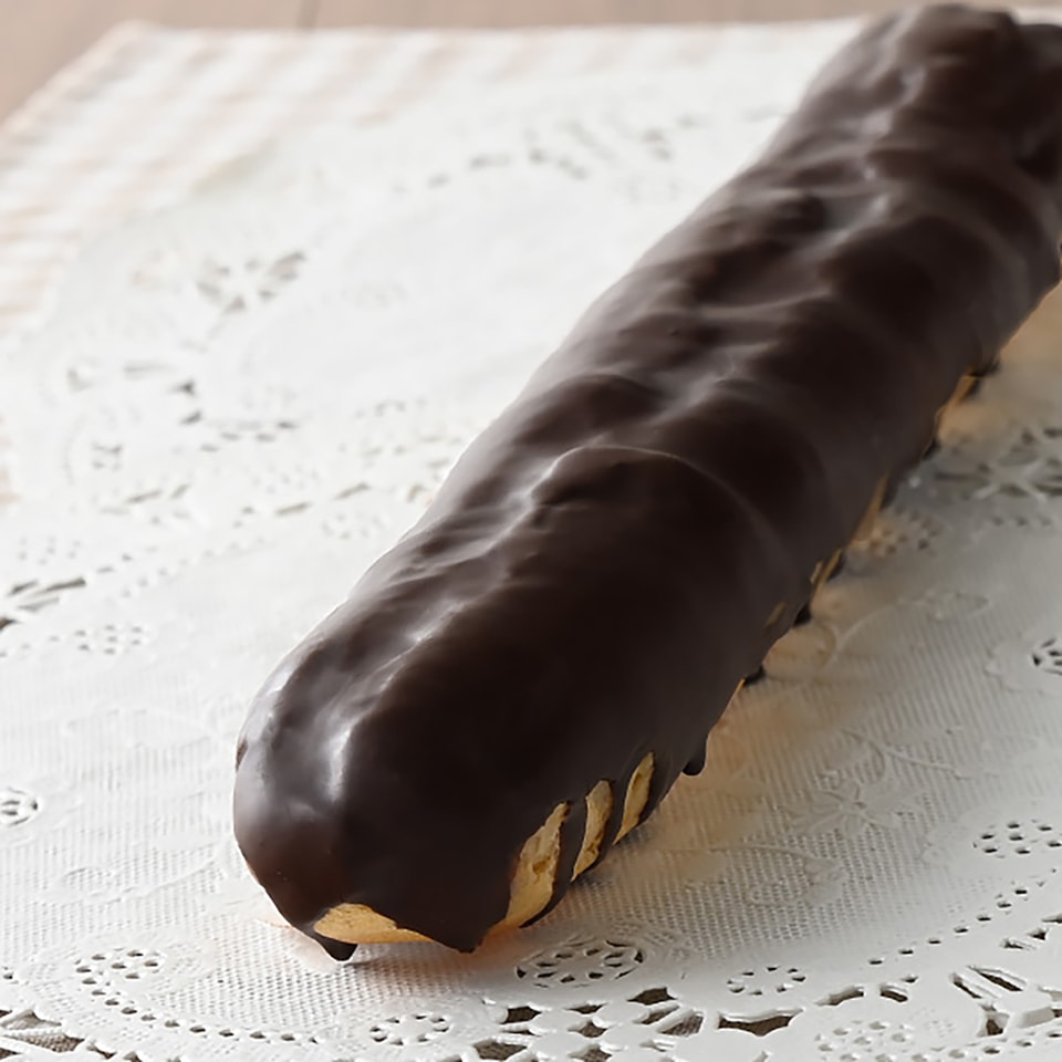 約27cmのエクレア。ボリュームはもちろん、しっとりした生地で最後まで食べ進めやすい仕立てにした。