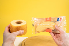 長さ約27cmのロールケーキ。スポンジでホイップクリームを巻き込んだミルク風味のシンプルな仕立て。