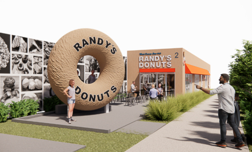 1952年にロサンゼルスで創業した「ランディーズドーナツ」は、米1号店の屋根にそびえ立つ直径約10m(32フィート)の巨大なドーナツ型サイン看板が古くから街のシンボルになっており、「アイアンマン」などの映画やミュージックビデオ、著名人のSNSにもたびたび登場するランドマークとして知られている。