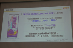 ペパーミント以外で求められるフレーバーを調査したところ、グレープ、レモン、ピーチの順に人気が高かったことから、今回はグレープを採用。最初にグレープらしい華やかでジューシーな味わいが広がり、最後にFRISKらしい冷涼感が喉の奥から鼻に抜ける感覚が楽しめる。