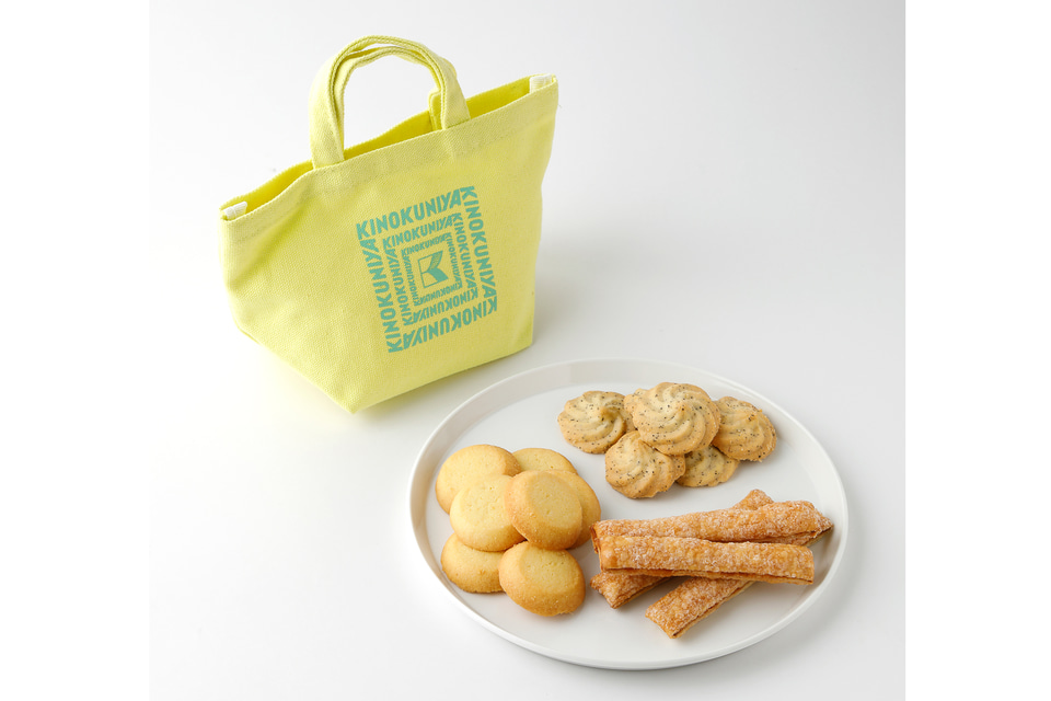 鮮やかなレモン色のコットンバッグで、サイズは約20×10×11cm(幅×奥行き×高さ)。レモンの風味とほんのり塩味が絶妙な「塩レモンクッキー」、レモンの程よい酸味とサクサク食感の「瀬戸内レモンパイスティック」、バターの風味豊かなクッキーにダージリン紅茶を練り込んだ「スペシャル紅茶クッキー」がセットになって価格は1296円。