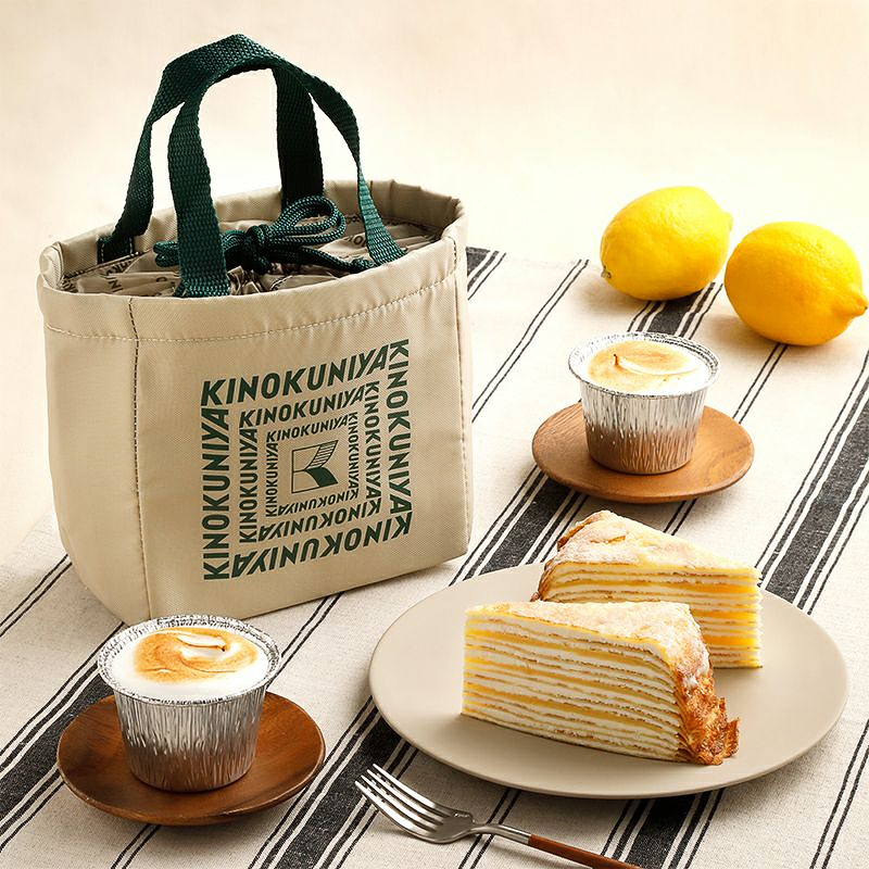 また、公式オンラインストアでは「ミニバッグ ライトブルー」とのセットを1980円で販売するほか、爽やかなレモン風味のミルクレープとメレンゲレモンパイにミニ保冷バッグのセットを2500円で用意している。
