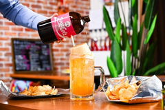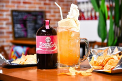 「ドカ・コーラ」は、1リットルの大容量ボトルに入った3055kcalのクラフトコーラで、価格は8640円(送料別)。一般的なクラフトコーラボトルの約5倍の容量で、ドカ食い・ドカ呑みをテーマにした本作の世界観を体現した。スパイシーさを控えめにし、食事に合う味わいに仕上げられており、炭酸水で5~8倍に希釈して楽しめる。本商品1本で、グラス25~40杯分の5~8L(ドカ呑みまんぞくジョッキ5~8杯分)のコーラを作ることができる。