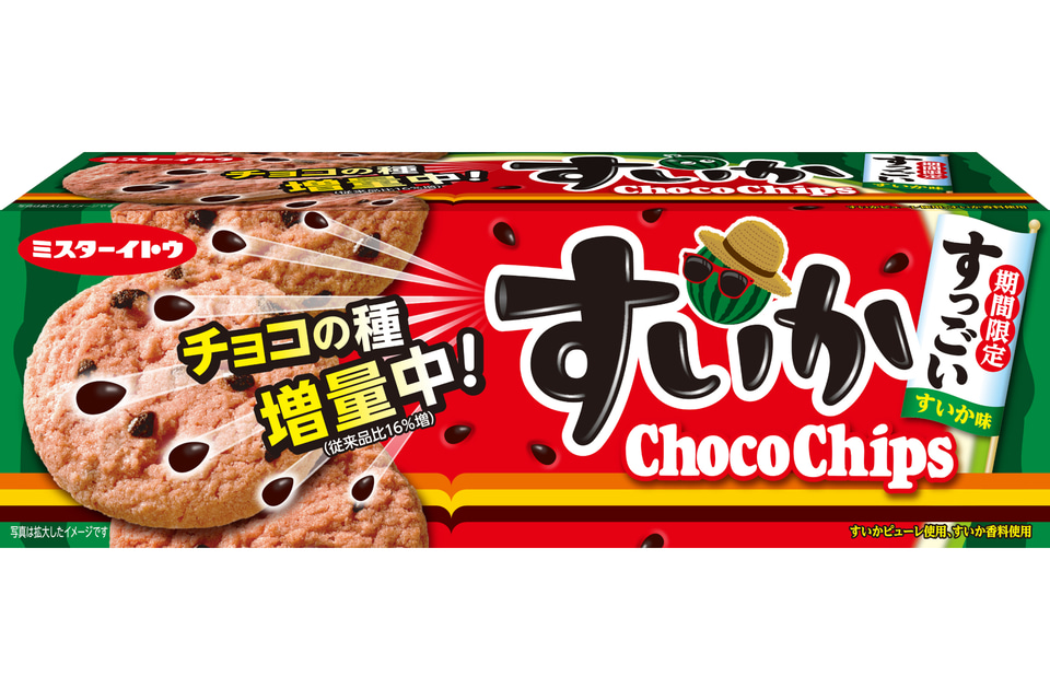イトウ製菓「すいかチョコチップクッキー」、今年はチョコ16%増量で登場
