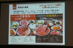 同社では26日に発表会を開催し、代表取締役社長の澄川浩太氏と牛角マーケティング部 部長の戸田祐介氏が新セット提供の背景や狙いを説明した。