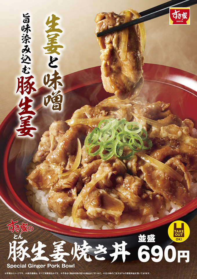 牛丼チェーン店のすき家は「豚(とん)生姜焼き丼」を6月10日9時に発売する。