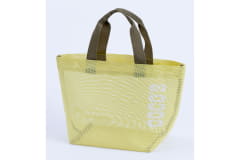 パステルカラーと細かなメッシュ素材による程よい透け感が夏らしさを演出するトートバッグ。500mLのペットボトルやA4サイズのファイルも収納可能な大きさ。セットのかき氷巾着と組み合わせることで、中身を見えにくくすることもできる。
