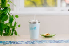 ココスの夏の風物詩「純氷ふわふわかき氷」の“純氷”をイメージした、爽やかなアイスブルーのステンレスタンブラー。真空二重構造により高い保冷・保温性を備えており、カップホルダーとしても使用できる。