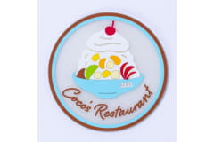 「純氷ふわふわかき氷 しろくま」のデザインを採用したコースター。水に強く滑りにくい設計となっている。大きめのサイズなので様々なグラスに対応できるという。
