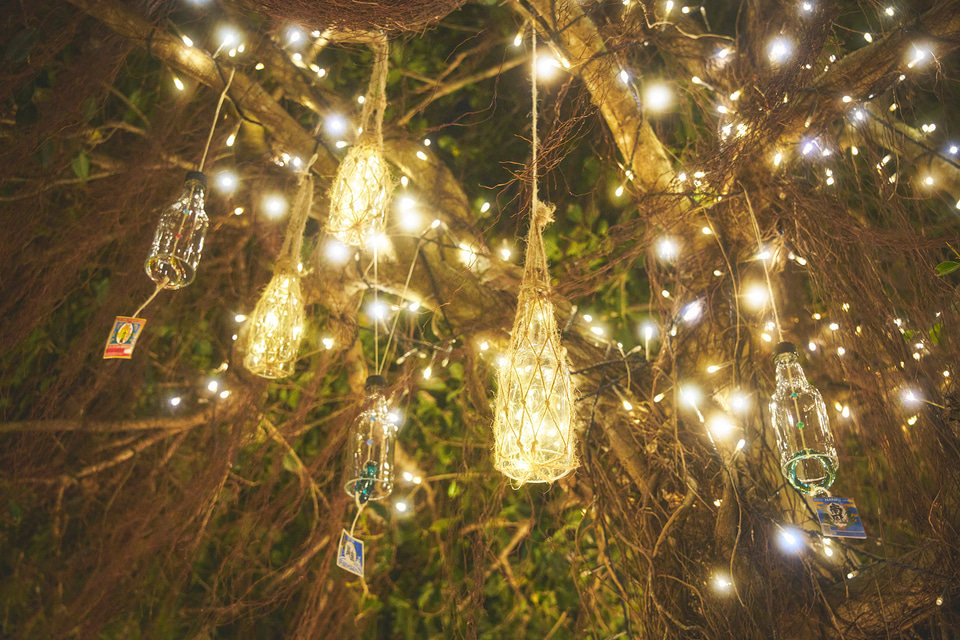 イベント会場は空き瓶を活用した風鈴やランタンで飾り付け