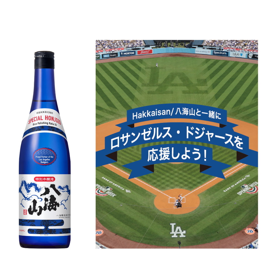八海醸造は2025年3月にロサンゼルス・ドジャースとパートナーシップ契約を締結し、その記念として球団のチームカラー「ドジャーブルー(Dodger Blue)」をまとった限定デザインボトル(720mL)を用意した。アルコール分は15.5度で、価格は1540円前後。
