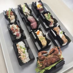海苔とシャリの上にサーモン、白身、いか、大葉、トマトなどを散りばめ塩レモンでさっぱりと仕上げた。「彩・味・食感」のバランスが高く、色味も鮮やかで見た目にも楽しいメニューとなっている。