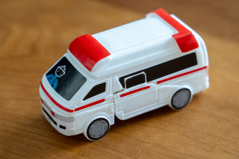 「トヨタ ハイメディック救急車」から変形するのが、メディブレイバーだ。人命を救うために事故現場で活躍する。