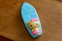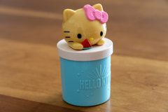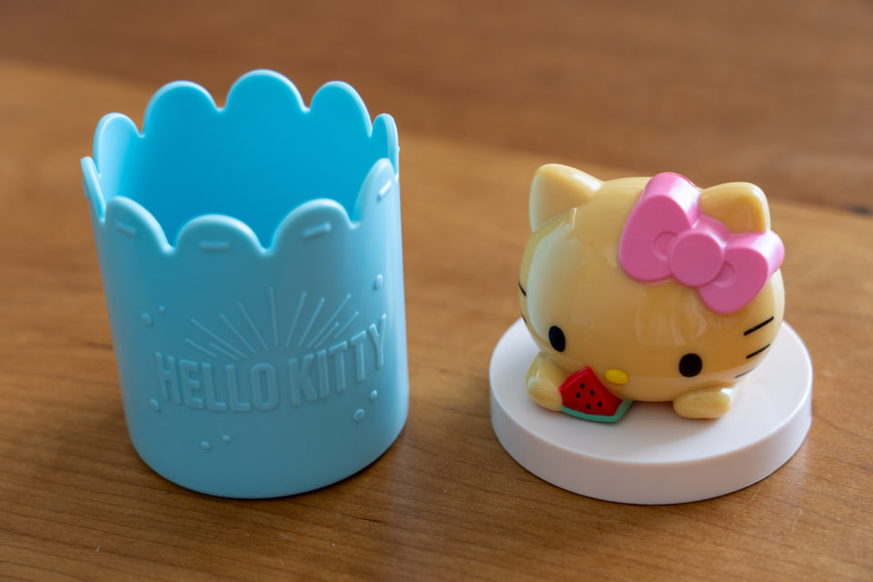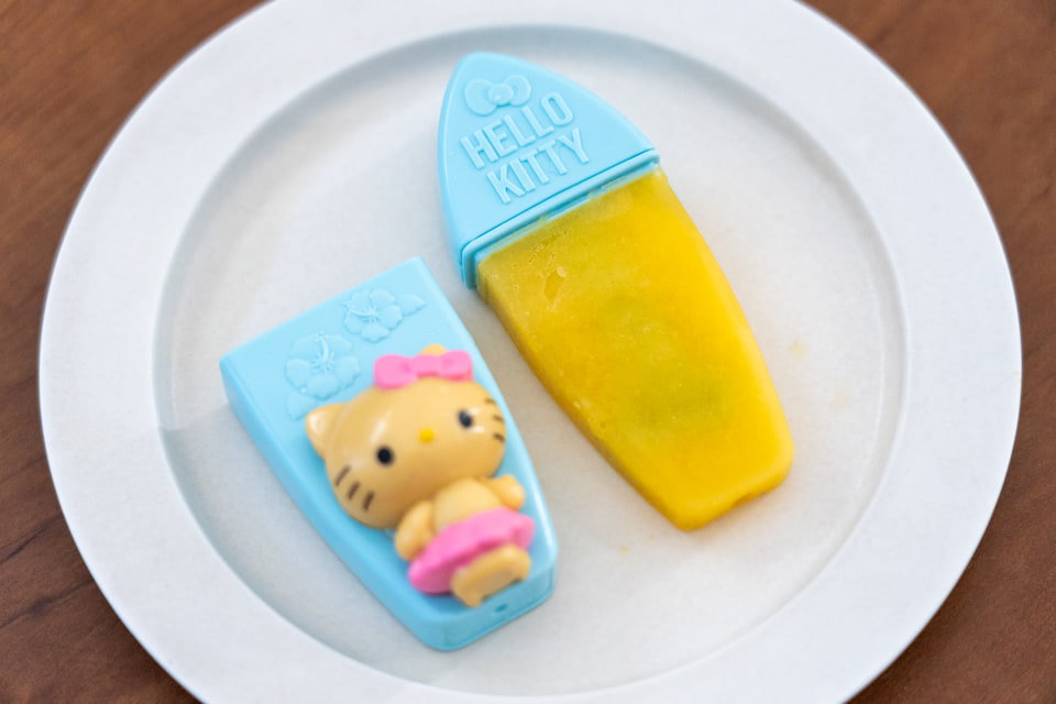 まずは、好きな飲み物を入れて凍らせてアイスキャンディーを作ることができるアイスメーカー。今回のアイテムは日焼け・水着・浴衣など、夏をテーマにしたものということで、ピンクの水着を着て日焼けしているキティがとってもキュートなアイテムだ。