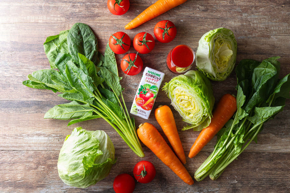 “飲むトマトサラダ”のように楽しめる野菜100%ジュースで、トマト・にんじん・ほうれん草・レタスの4種類の野菜を使用。素材を活かしすっきりとした味わいとなっている。リコピンと食物繊維が含まれ、手軽においしく野菜を摂取することができる。